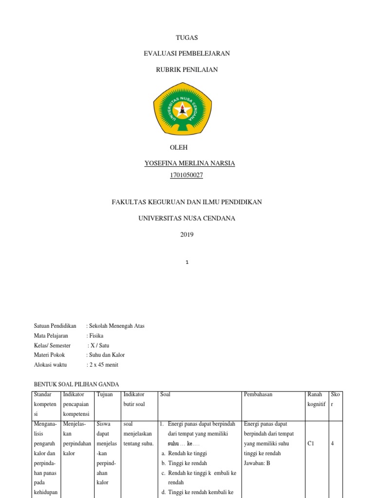 Posting Komentar untuk "Soal Pilihan Ganda Suhu Dan Kalor Kelas 11 : Soal Essay Suhu Pemuaian Dan Kalor Masnurul : 10 soal & pembahasan fluida dinamis (bagian 1) ǀ pilihan ganda."