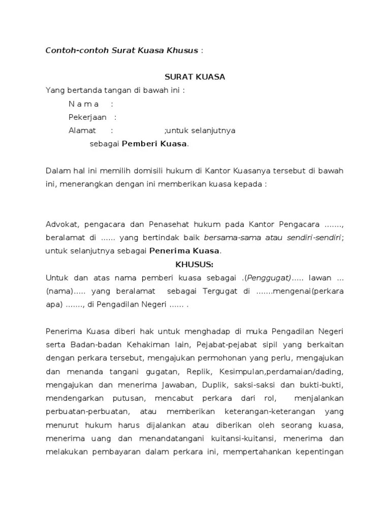 Dimana surat kuasa diberikan untuk kepentingan . Contoh format gugatan dan surat kuasa khusus. Judul surat yaitu "surat gugatan"; Kepada yang terhormat jakarta 26 maret 2021 bapak ketua pengadilan negeri jakarta pusat melalui kepaniteraan . Andi tatang supriyadi & rekan | > contoh surat kuasa > surat kuasa di pengadilan.
